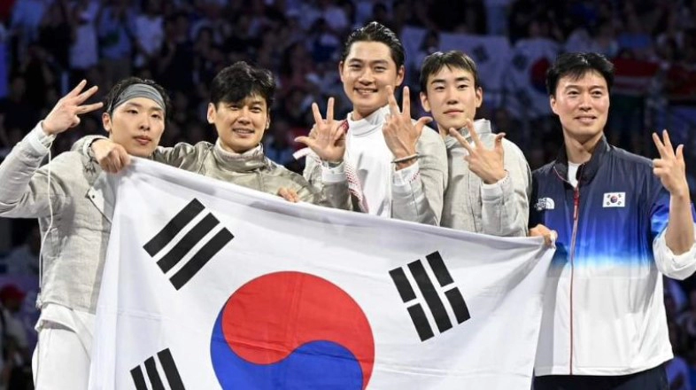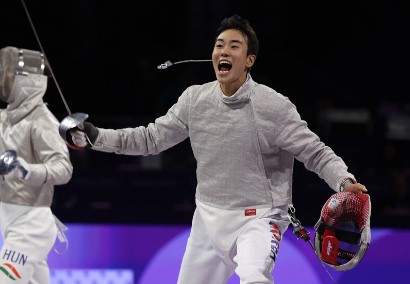 도경동은 오상욱, 구본길, 박상원과 함께 지난 1일(한국시간) 사브르 단체 결승 경기에서 헝가리를 45대 41로 꺾고 금메달을 목에 걸었습니다.