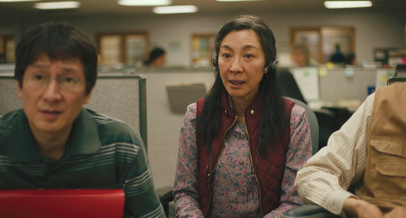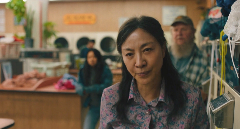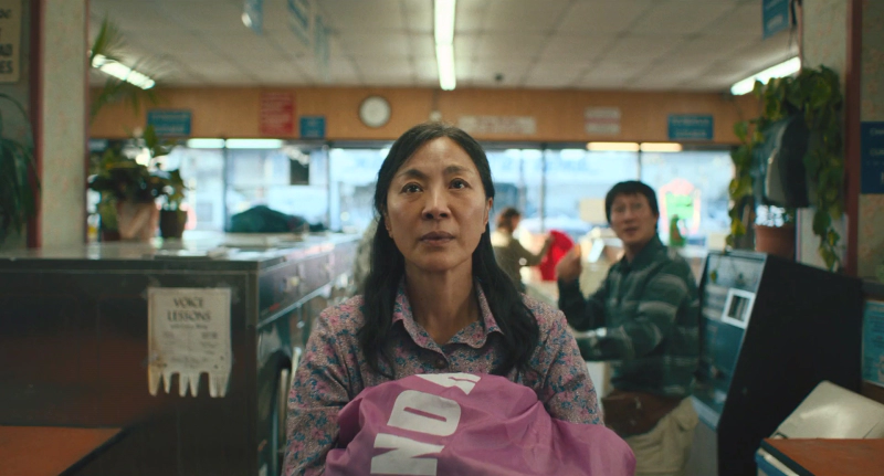 영화 줄거리를 살펴보면 ‘에블린’(양자경)은 아빠가 반대하는 가난한 남자 ‘웨이먼드’(키 호이 콴)와 결혼해 아메리칸드림을 꿈꾸며 미국으로 건너와 세탁소 주인이 되었지만, 동성애자인 딸 ‘조이’(스테파니 수)와의 갈등과 한심한 남편에 대한 불만족한 삶을 살아갑니다.