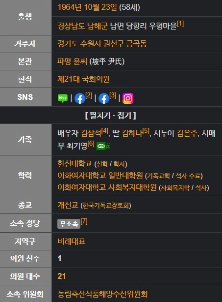 2020년에는 더불어시민당 비례대표로 제21대 국회의원에 당선되었습니다. 그러나 당선 이후에는 정의기억연대(정의연) 이사장 활동 당시 기부금을 횡령한 혐의 등으로 재판에 넘겨지며 최근까지 재판이 벌어지고 있는 상황입니다. 재판은 최근 2심에서도 검찰이 1심과 동일한 징역 5년을 구형한 상황입니다.