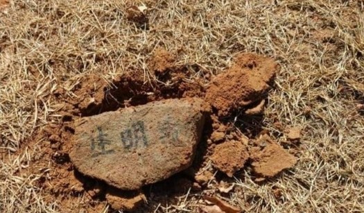 땅속에서 꺼낸 돌에는 붓으로 쓴듯한 생(生), 명(明) 등의 한자가 적혀 있습니다. 3시간 뒤에는 "의견을 들어보니, 일종의 흑주술로 무덤 사방의 혈 자리에 구멍을 파고 흉물 등을 묻는 의식"이라는 글을 추가했습니다.
