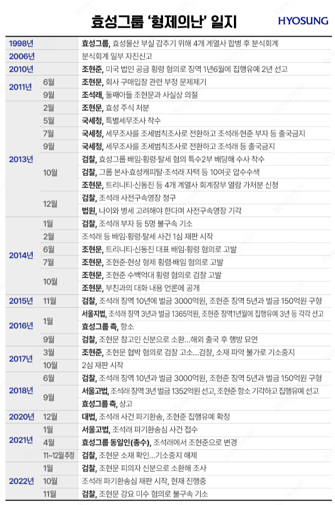 2014년, 조현문 변호사는 효성중공업 부사장 재직 중에 효성그룹 계열사 대표들은 물론 친형인 조현준 현 사장과 효성그룹 임원 8명을 횡령 및 배임 혐의로 고발했습니다.